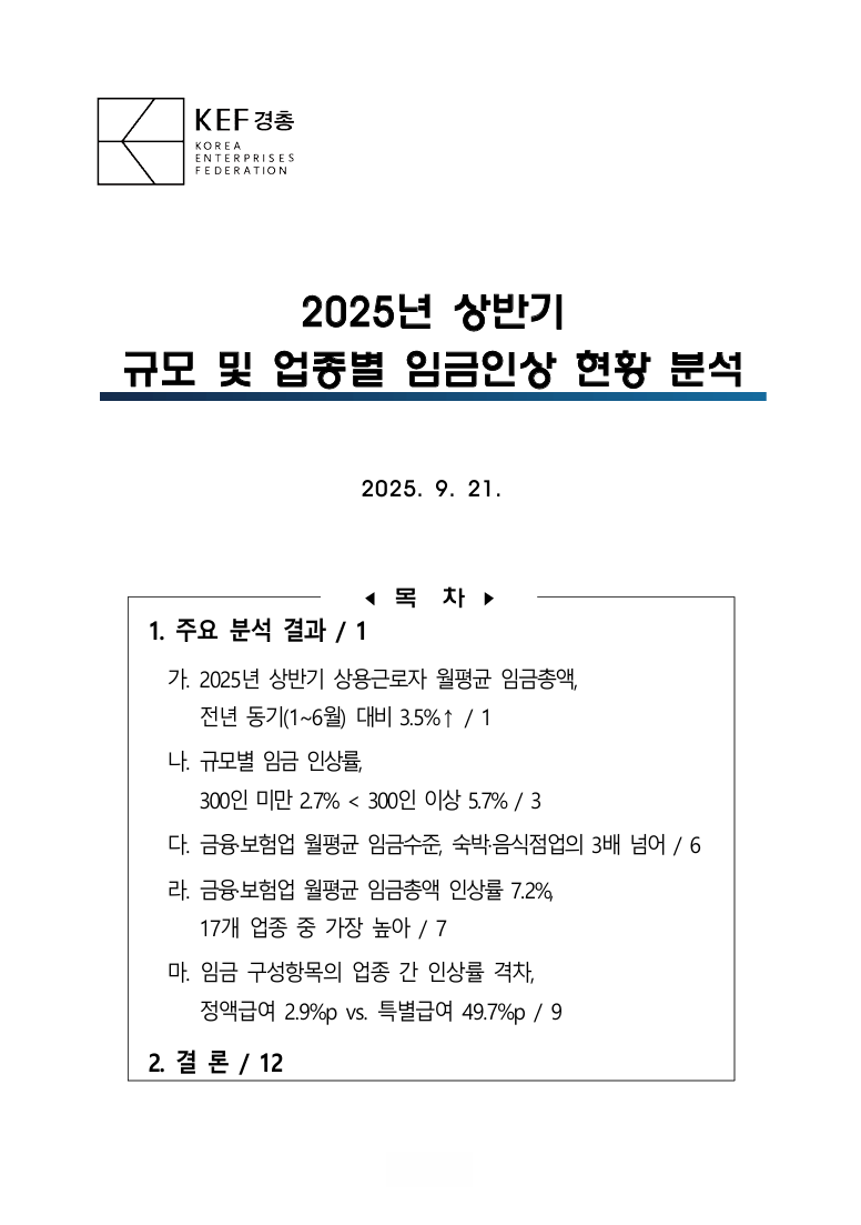 2025년 상반기 규모 및 업종별 임금인상 현황 분석