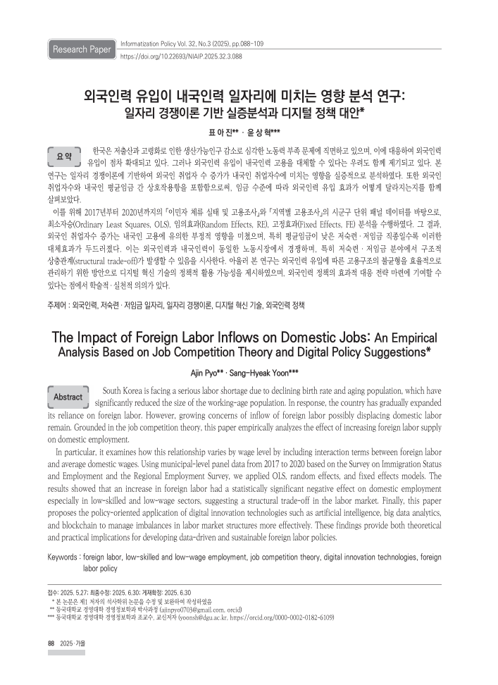 외국인력 유입이 내국인력 일자리에 미치는 영향 분석 연구