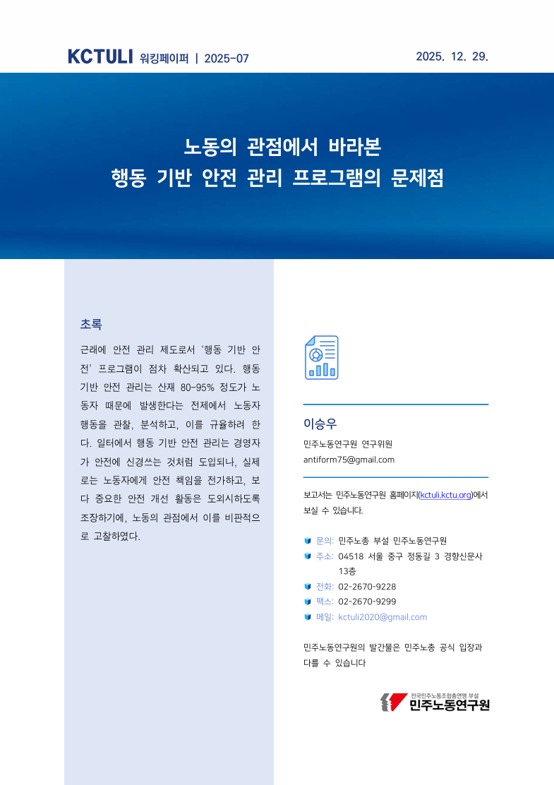 노동의 관점에서 바라본 행동 기반 안전 관리 프로그램의 문제점