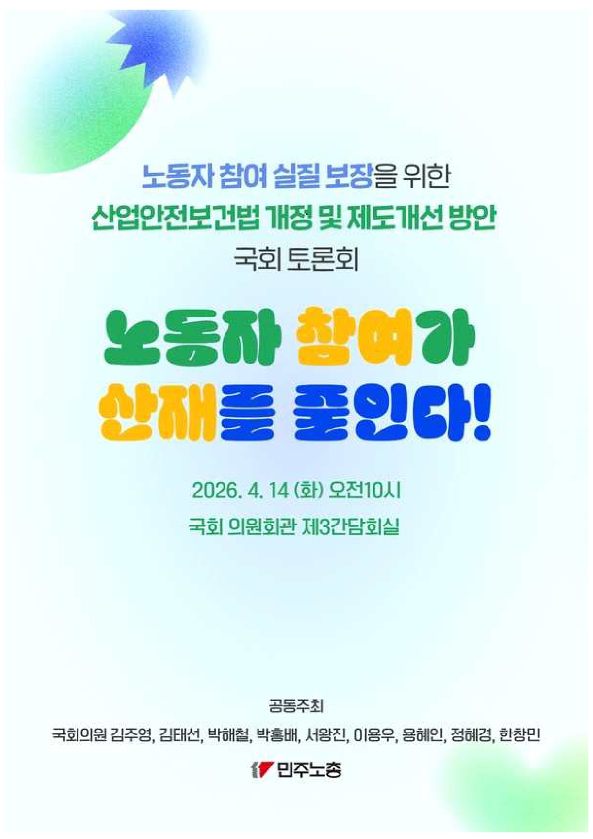 노동자참여 실질 보장을 위한 산안법 개정 및 제도개선방안 토론회