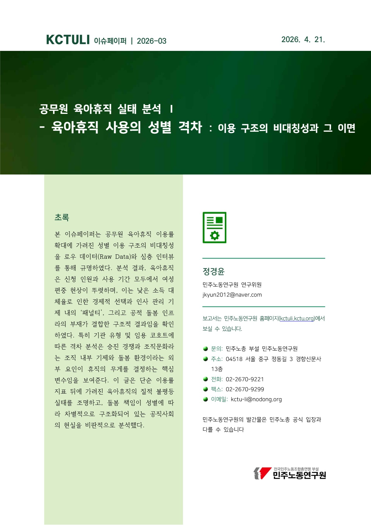 1. 머리말 : 공공부문 일·가정 양립 제도의 현주소와 분석의 필요성